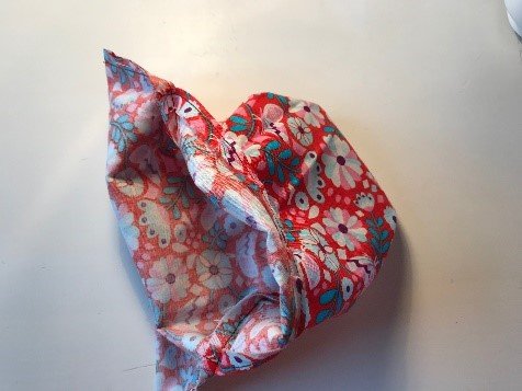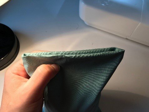 Nun den Stoff umdrehen, sodass die Naht innen liegt.
