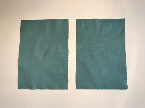 Zunächst zwei gleich große Stoffteile mit den Maßen 14 cm x 20cm zuschneiden.