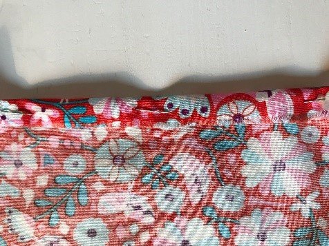Die beiden schmalen Seiten nun umschlagen, mit Stecknadeln befestigen und abnähen.