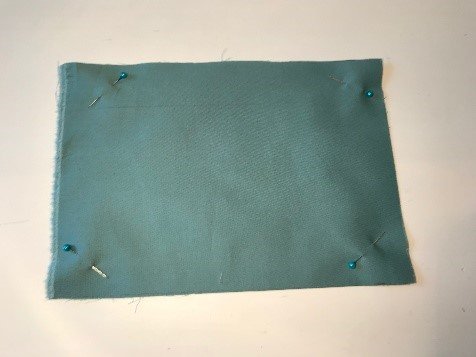 Die Stoffteile mit den Seiten, die später außen sein sollen, aufeinanderlegen und mit Stecknadeln befestigen.