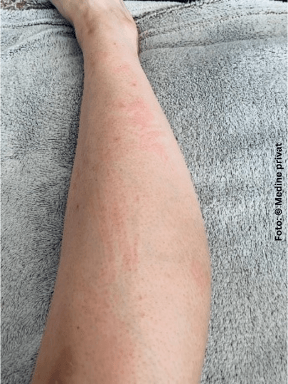 Und tatsächlich finden diese Gedanken in meinem Kopf statt. Aber leider kreisen auch weitere Gedanken durch meinen Kopf, denn mit meiner Neurodermitis ist meine Haut vorbelastet und verträgt sich leider nicht so gut mit dem Rasierer. Wie gerne hätte ich eine glatte Haut, würde meine Sommerkleider auspacken und jeden Tag ein anderes Kleid tragen – so ist es allerdings nicht. Meine Haut ist durch ihre empfindliche Art nicht so gut mit anderen Stoffen verträglich. Wenn ich dann jeden Tag mit dem Rasierer über die Haut gehen würde, könnte das böse enden. Denn jede Rasur sorgt für Hautirritationen. Besonders an sehr warmen Tagen fängt meine Haut an zu jucken und bringt mich fast zum Verzweifeln. Sogar meine Nächte werden dadurch sehr stark beeinträchtigt. Denn beim Nachwachsen der Beinhaare könnte ich stundenlang meine Beine kratzen, da der Juckreiz zu diesem Zeitpunkt am stärksten ist. Die Konsequenz für mich und meine Haut: es entstehen Risse und rote Stellen.