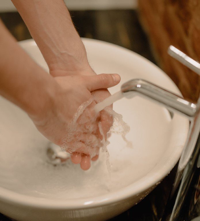 Bei der Pflege spielt auch das Händewaschen eine wichtige Rolle. Verwende dabei eine rückfettende oder milde Seife mit neutralem pH-Wert. Am besten wäschst Du Deine Hände nicht zu häufig und nutzt lauwarmes Wasser. Trockne sie behutsam tupfend ab, statt sie fest zu reiben. Achte dabei auch auf die Fingerzwischenräume. Bleiben sie feucht, kann das die Haut reizen. Nach jedem Händewaschen solltest Du eine rückfettende Handcreme zur Pflege verwenden.
